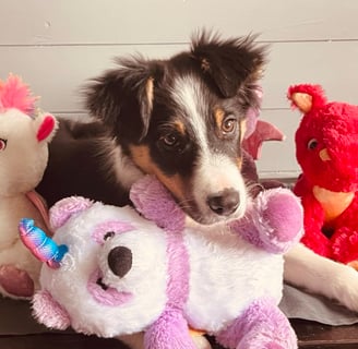 Un chien ne peut pas débuter les sports canins en compétition avant un an et c’est très bien ainsi. De plus, pour commencer le Dog Dancing même en Fun (avec de la nourriture et avec un temps limité), il doit avoir un an minimum et avoir passé son CAESC et son PASS, donc pas avant début 2025 au mieux. En fait réellement, je dis un an par patte pour qu’il arrive à une certaine maturité et physique et émotionnelle, pour s’engager dans la compétition à un niveau plus élevé. Donc pas de précipitation, mais dans ce temps, il y a tellement à faire et à construire. Le plus important étant de partager des expériences positives et de mettre en place la fameuse relation avant d’attaquer les choses plus sérieusement.