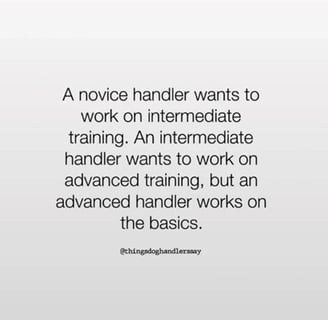 Et en reformulant : « Un débutant aspire à maîtriser les techniques intermédiaires. Un dresseur confirmé cherche à atteindre un niveau avancé, tandis qu'un expert revient toujours aux fondamentaux ».