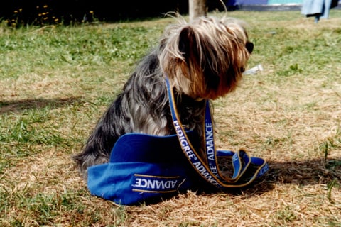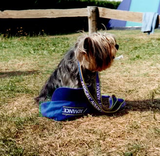 Et pour être honnête c’est d’une certaine façon, un de mes chiens qui m’a permis de prendre du recul sur mes méthodes. Dib a été le chien le plus complexe que j’ai eu à gérer (et j’espère de ma vie) et celui avec lequel j’ai été le plus frustrée. Il m’a fait comprendre ce que « lâcher-prise » voulait dire. S’il était humain, je pense qu’il aurait été diagnostiqué autiste Asperger. A la fois très intelligent, mais avec une incapacité de gérer ces émotions, et donc à ne pas pouvoir utiliser son intelligence. Il savait très bien communiquer et pourtant en était incapable à certains moments (au point de provoquer la colère des autres chiens). Pour ceux qui connaissent, c’est un peu comme Monk (et oui il avait des tocs comme lui à toucher les objets qui étaient à sa portée par exemple). Mais surtout une détermination à faire soi-même et ne pas être aidé : son ostéopathe a dit un jour, alors qu’il galérait à faire ce qu’il souhaitait : « il fait tout pour que je ne réussisse pas ». Et en fait cela le résumait bien. Dib était très complexe puisqu’il ne voulait pas coopérer, s’il n’y trouvait pas son intérêt. Et si vous croyiez qu’utiliser des moyens classiques de conditionnement fonctionnait …. Et bien non ! Dib ne s’« achetait » pas ! C’est le type de chien où plus il était récompensé, et moins cela fonctionnait. C’était à lui de décider s’il adhérait ou pas. Et s’il coopérait et bien disons que c’est toujours à SA façon (et pas à la mienne) ! Et en fait, il comprenait presque instantanément ce que je voulais (avec lui c’était presque de la télépathie tellement il était sensible). Et du coup Dib voulais bien faire une fois (éventuellement !) mais après il faisait l’inverse. Je pensais droite, il allait à gauche ; je lui disais monte, il descendait, etc….