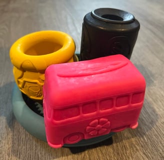 Un autre moyen de rentrer facilement dans une activité avec son chien est la nourriture. Soit en variant la prise de nourriture, et là il y a tellement de possibilités actuellement d’enrichissement. Parce que dans la nature, un chien passe du temps à trouver sa nourriture, alors que pour les chiens, en quelques minutes (voire secondes !) la gamelle est engloutie ! Il est possible de mettre la nourriture dans des gamelles qui ralentissent la pris de nourriture, ou de la cacher par exemple. Les moyens « d’occuper » son chien à l’aide de la nourriture sont légions. Disons que ce sujet étant très à la mode, beaucoup d’informations sont disponibles. Personnellement, j’ai toujours pratiqué la prise de nourriture dans des objets à lécher. Pour certains chiens, cette activité était primordiale et représentait un vrai besoin. Au départ, je les mettais dans des os à moelle creux (ce que je déconseille fortement), puis dans des kongs, et maintenant ils ont des jouets et gamelles spécifiques. Là j’avoue que les formes et possibilités sont tellement nombreuses que vous pouvez vous faire plaisir. Mes chiens adorent avoir leur prise de nourriture dans ce type de jouet, que ce soit des croquettes ou encore de la viande ou du yaourt.